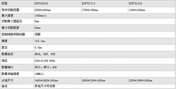 復(fù)合材料切割機(jī)的技術(shù)參數(shù):